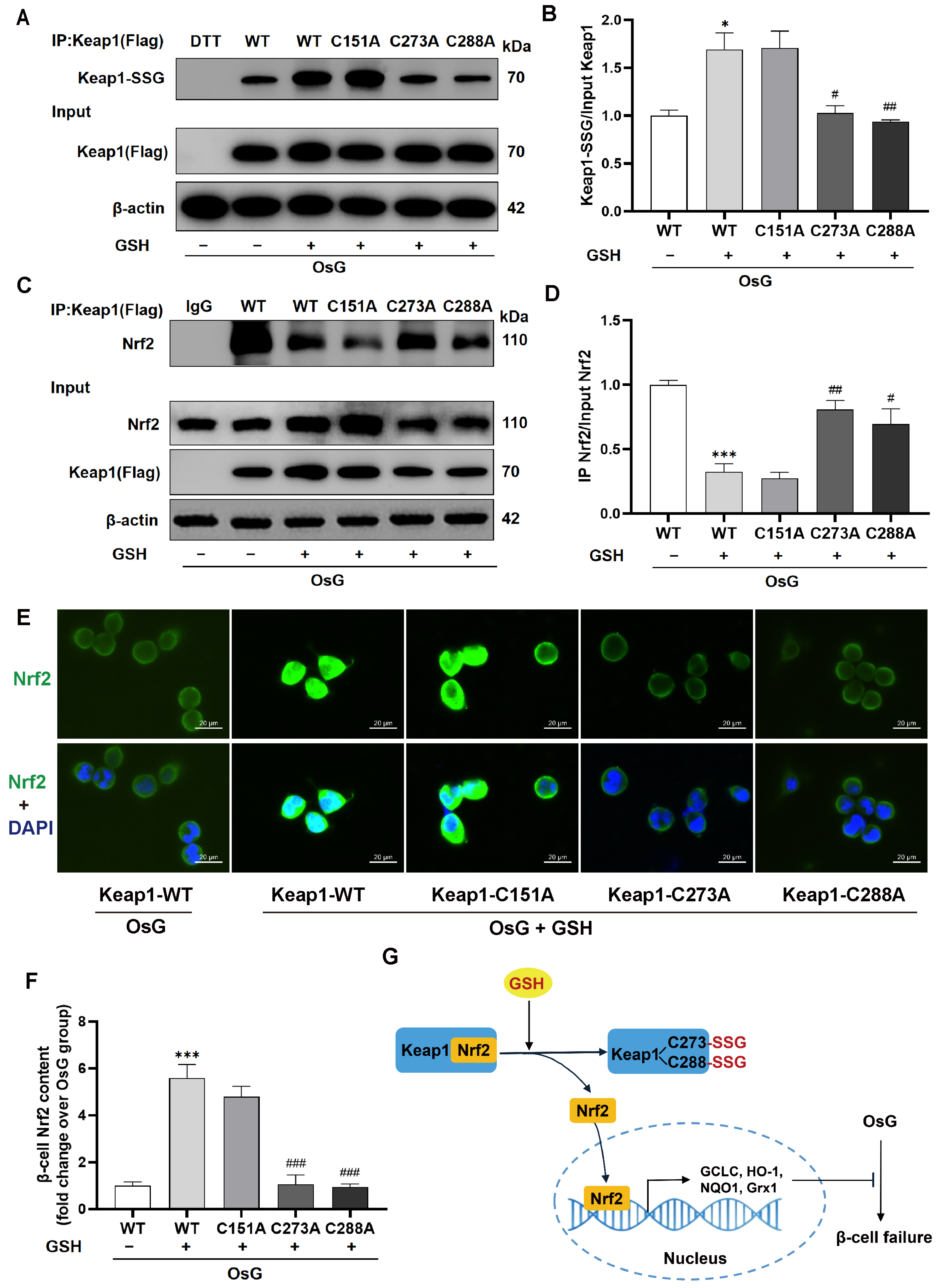 - Chen, X.; Zhou, Q.; Chen, H.; Bai, J.; An, R.; Zhang, K.; Zhang, X.; An, H.; Zhang, J.; Wang, Y.; et al. Glutathione Induces Keap1 S-Glutathionylation and Mitigates Oscillating Glucose-Induced β-Cell Dysfunction by Activating Nrf2. Antioxidants 2024, 13, 400. [Google Scholar] [CrossRef] [PubMed]