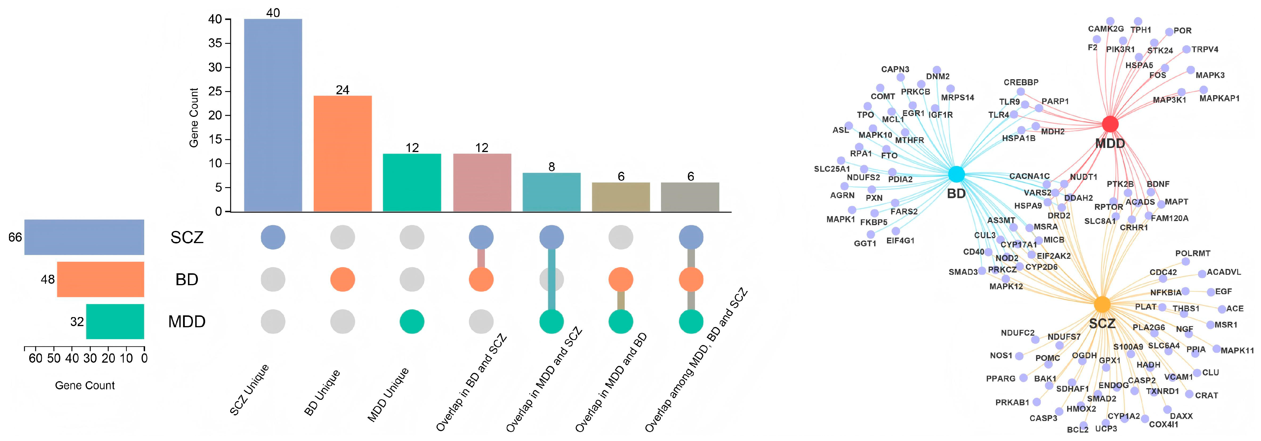 - Owen, M.J.; Bray, N.J.; Walters, J.T.R.; O’Donovan, M.C. Genomics of schizophrenia, bipolar disorder and major depressive disorder. Nat. Rev. Genet. 2025, 26, 862–877. [Google Scholar] [CrossRef]