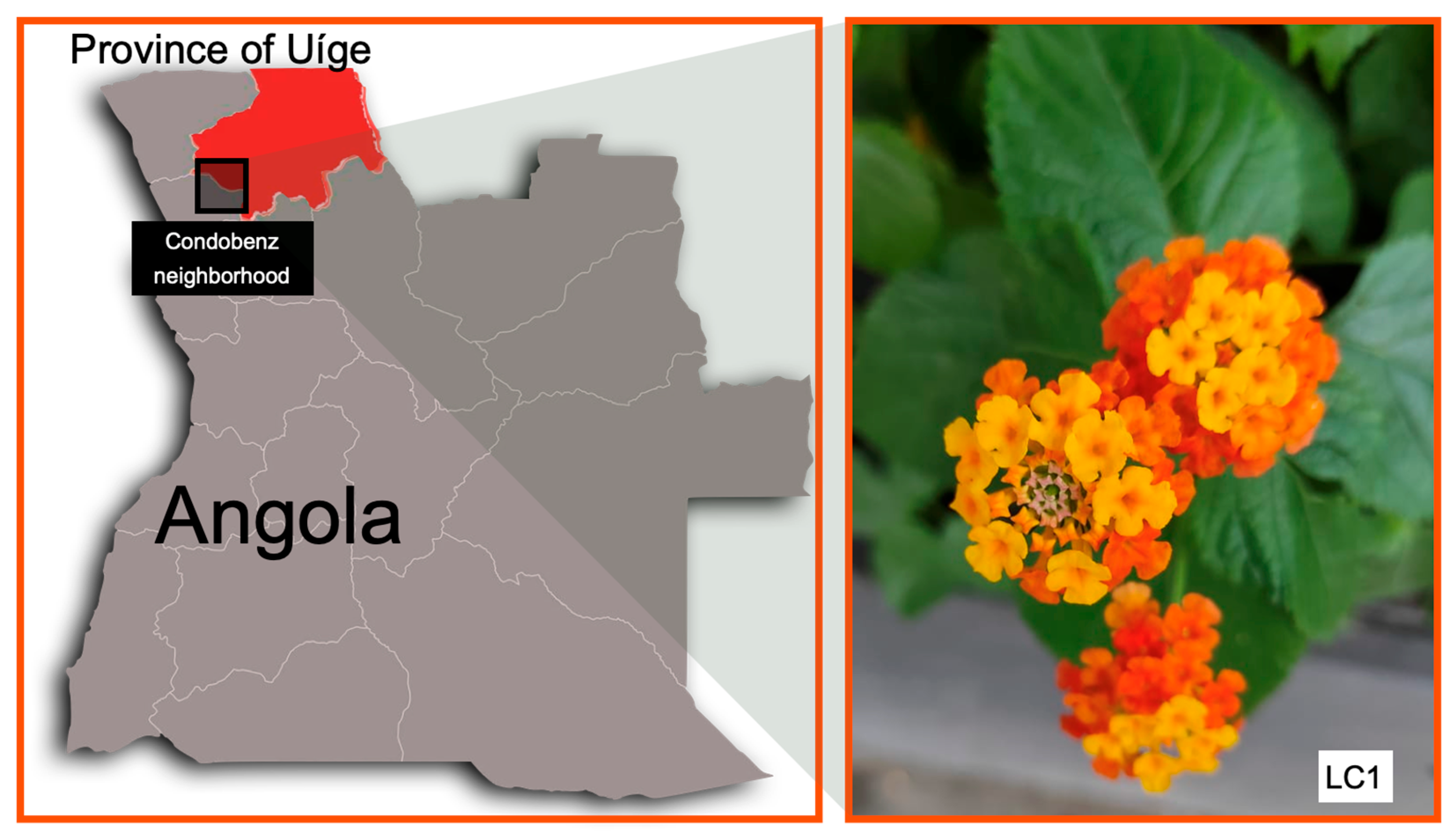 - Nea, F.; Kambiré, D.A.; Genva, M.; Tanoh, E.A.; Wognin, E.L.; Martin, H.; Brostaux, Y.; Tomi, F.; Lognay, G.C.; Tonzibo, Z.F.; et al. Composition, Seasonal Variation, and Biological Activities of Lantana camara Essential Oils from Côte d’Ivoire. Molecules 2020, 25, 2400. [Google Scholar] [CrossRef]
