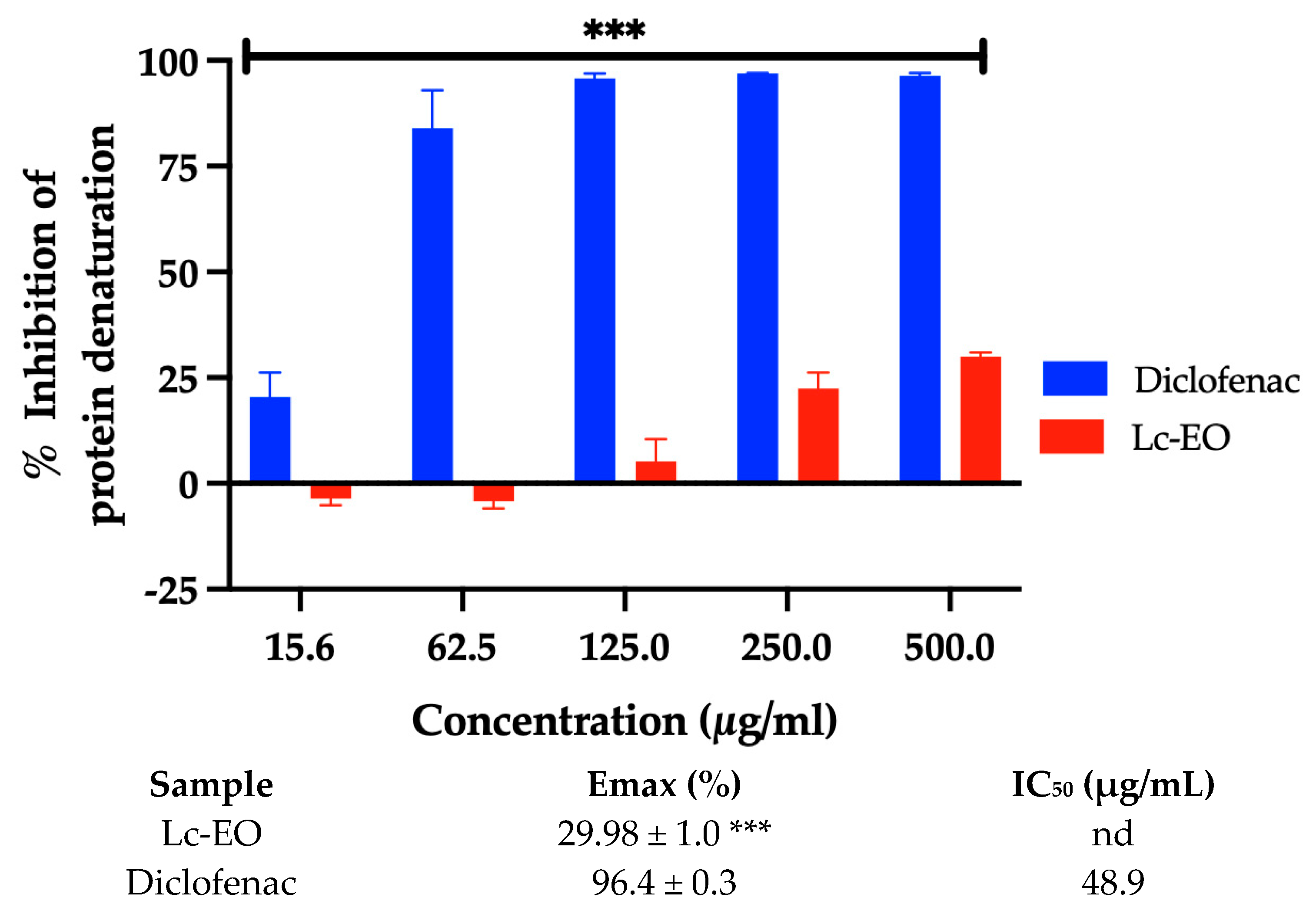 2.6. Anti-Inflammatory Activity by Inhibition of Protein Denaturation