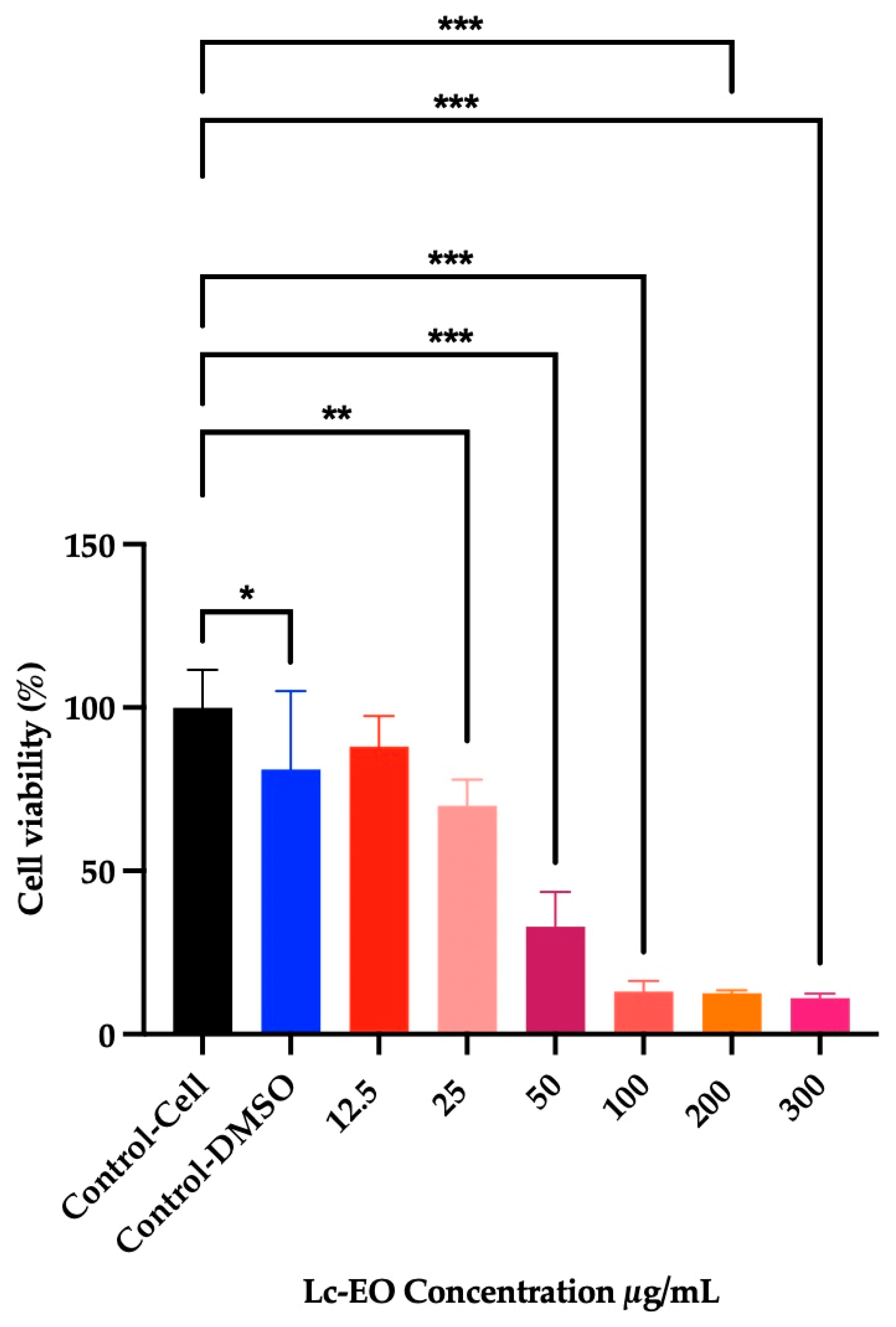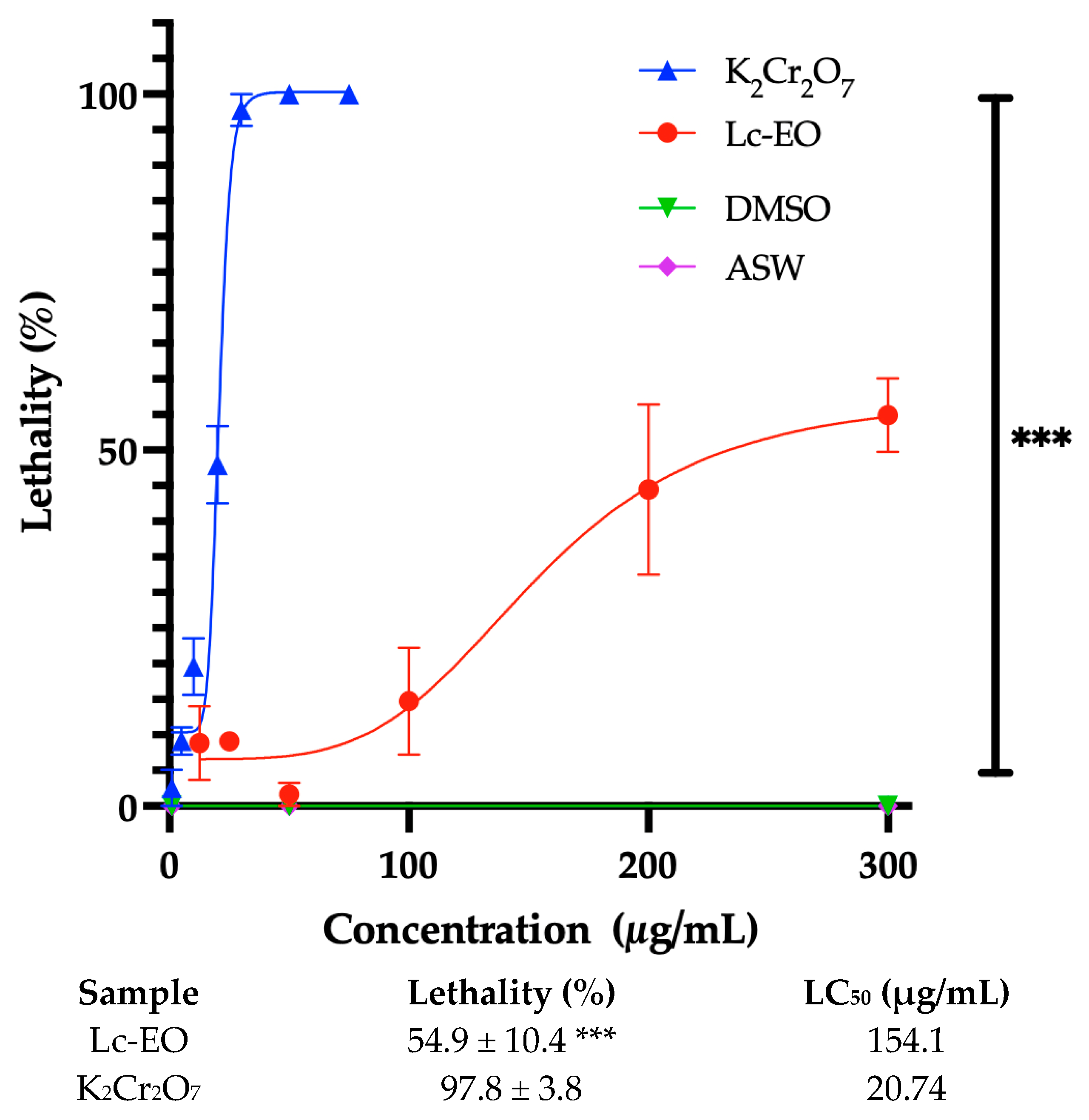 2.7. Toxicity Test of Lc-EO