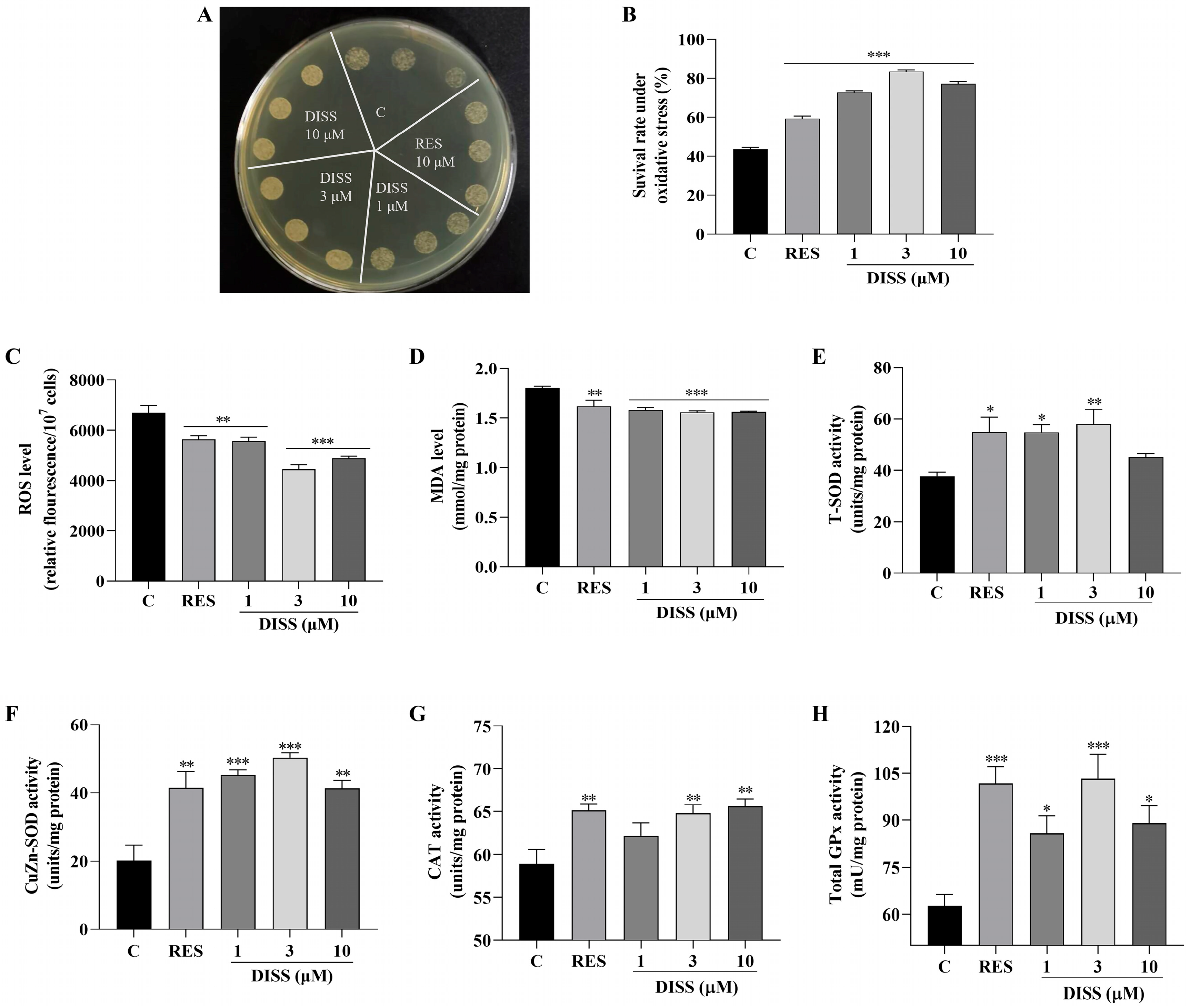 3.4. DISS Enhances the Antioxidant Capacity of Yeast