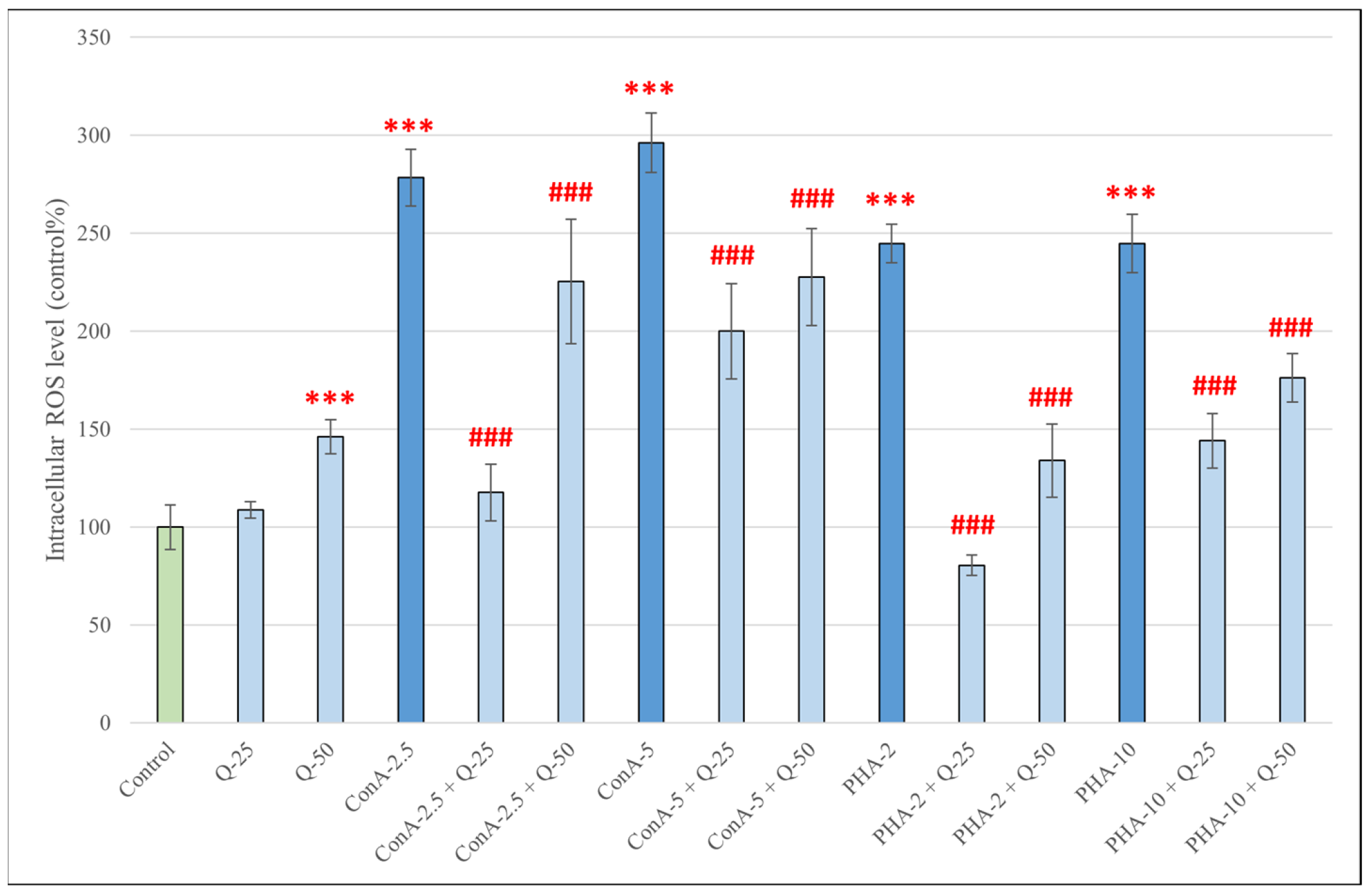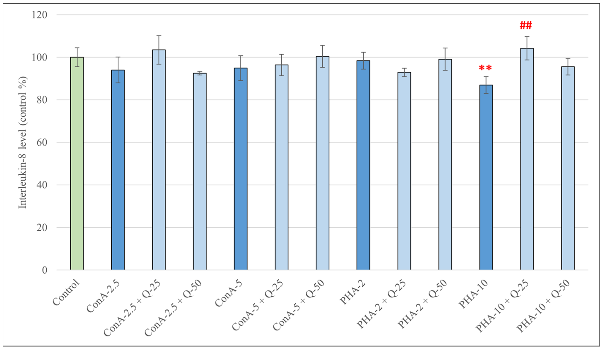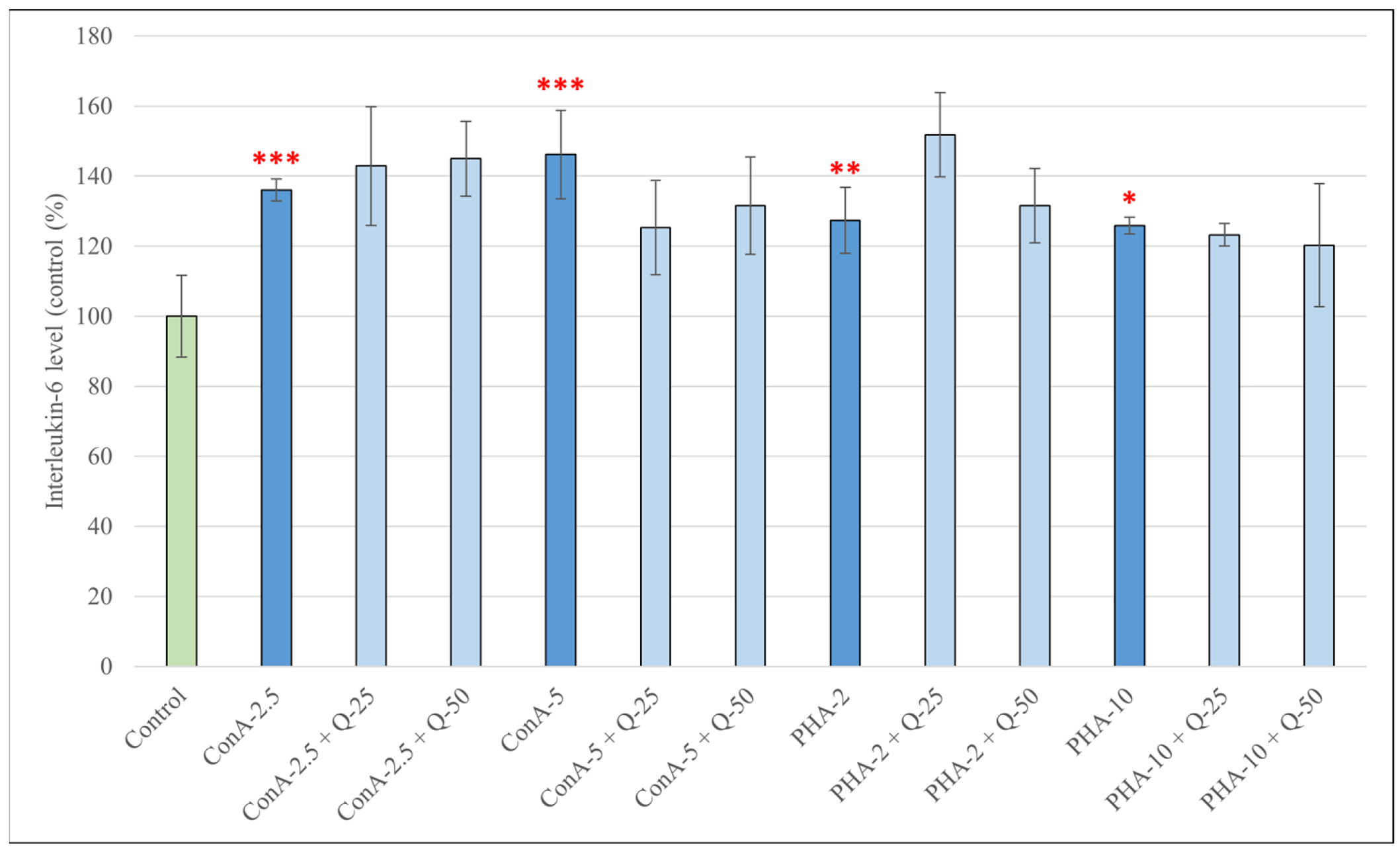 | ConA-2.5 + Q-25 | concanavalin A, 2.5 μg/mL + quercetin, 25 μM | PHA-10 + Q-50 | phytohemagglutinin, 10 V/V% + quercetin, 50 μM |