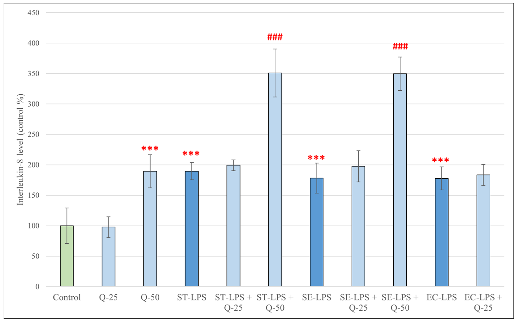 | EC-LPS + Q-50 | E. coli LPS, 1 μg/mL + quercetin, 50 μM | PHA-10 + Q-25 | phytohemagglutinin, 10 V/V% + quercetin, 25 μM |