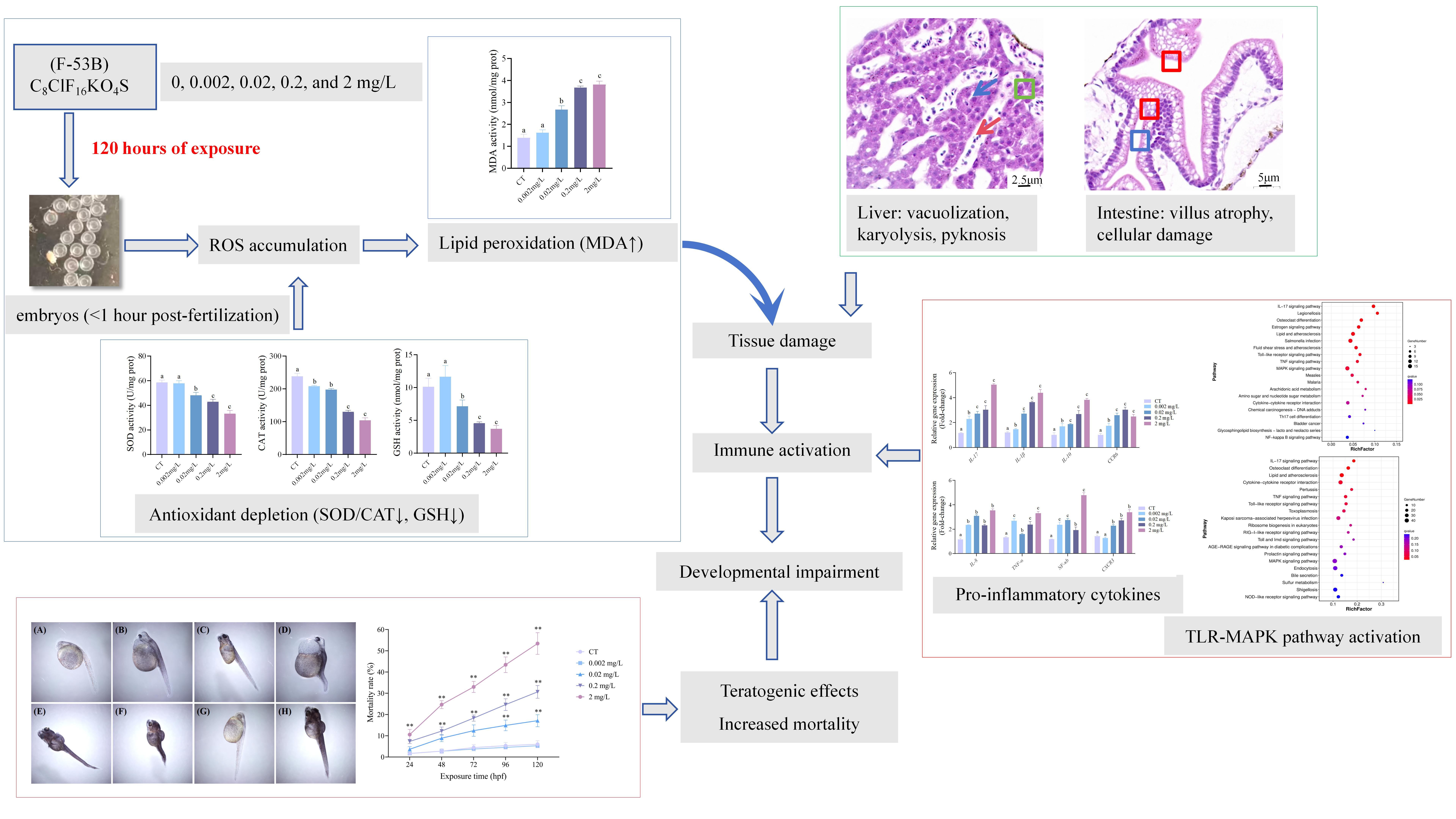 Chicago/Turabian StyleLu, Yuntao, Ziwen Yang, Yang Zou, Yueying Deng, Luping Liu, Jian Zhao, Qing Luo, Haiyang Liu, Shuzhan Fei, Kunci Chen, and et al. 2026. "Developmental Toxicity of Chlorinated Polyfluorinated Ether Sulfonate (F-53B), a Perfluorooctane Sulfonate (PFOS) Alternative, in Embryos and Larvae of Blotched Snakehead (Channa maculata)" Antioxidants 15, no. 3: 368. https://doi.org/10.3390/antiox15030368