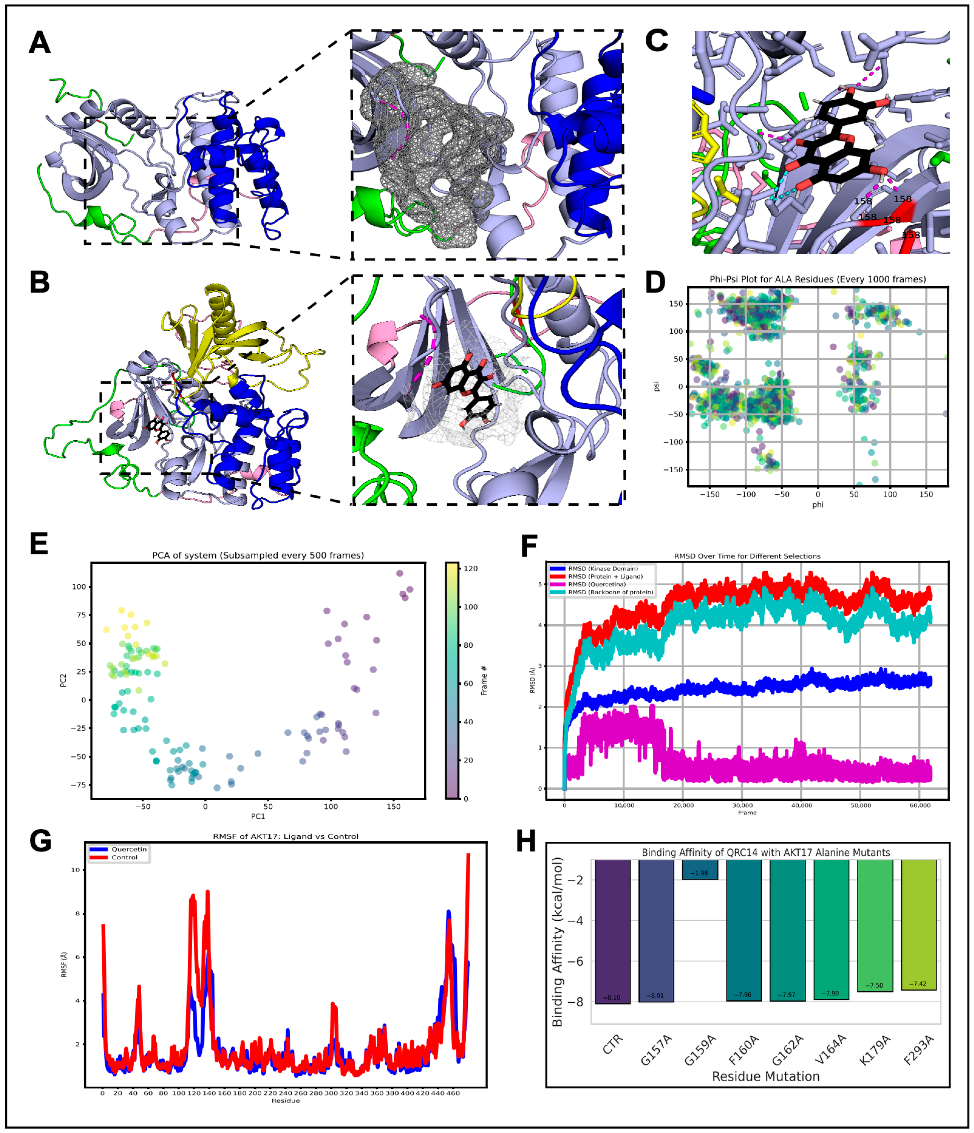 3.3. Bioinformatic Studies: Molecular Docking and Molecular Dynamic Analysis of AKT-QRC Interaction