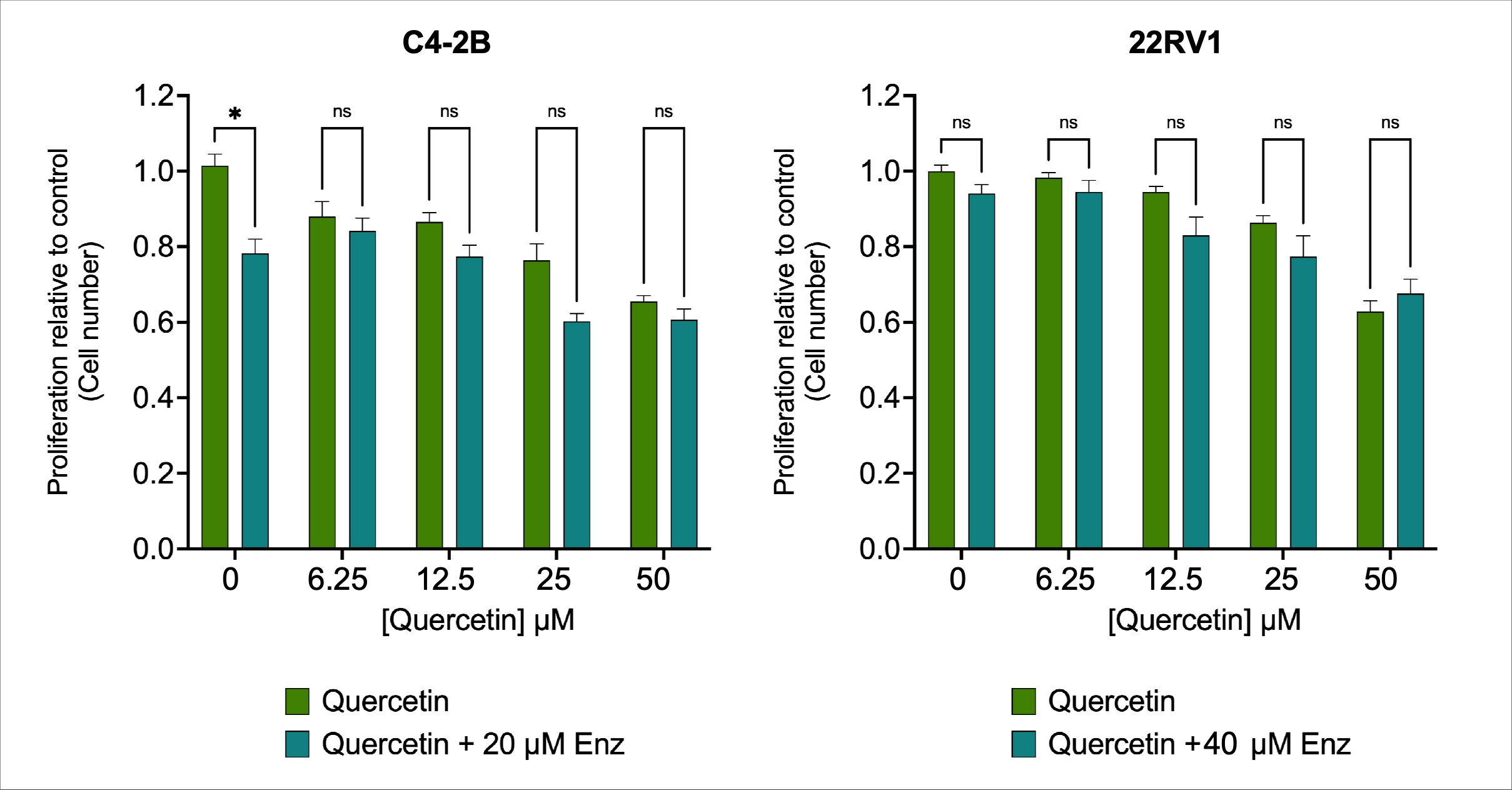 3.5. QRC and Enzalutamide Do Not Show Additive Anti-Proliferative Effects on CRPC Cell Lines at 48 h