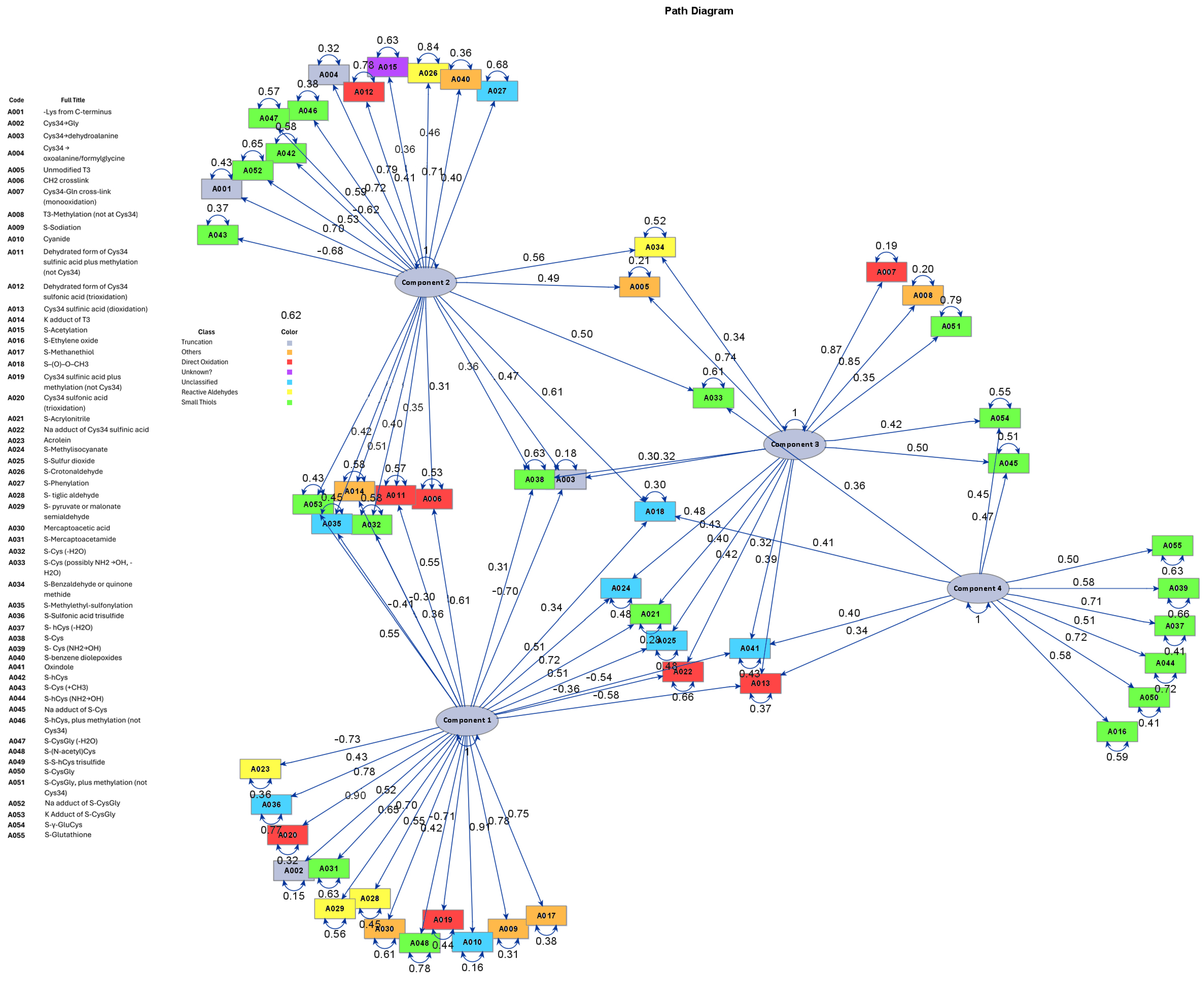 The adducts detected in newborn DBS also reflected ROS responses correlated with MSDP, consistent with previous studies. Specifically, we observed reduced levels of S-Sulfinic acid, and S-γGluCys, and elevated levels of S-(N-acetyl) Cys in newborns with MSDP exposure. These observations align with the findings of Grigoryan et al. [