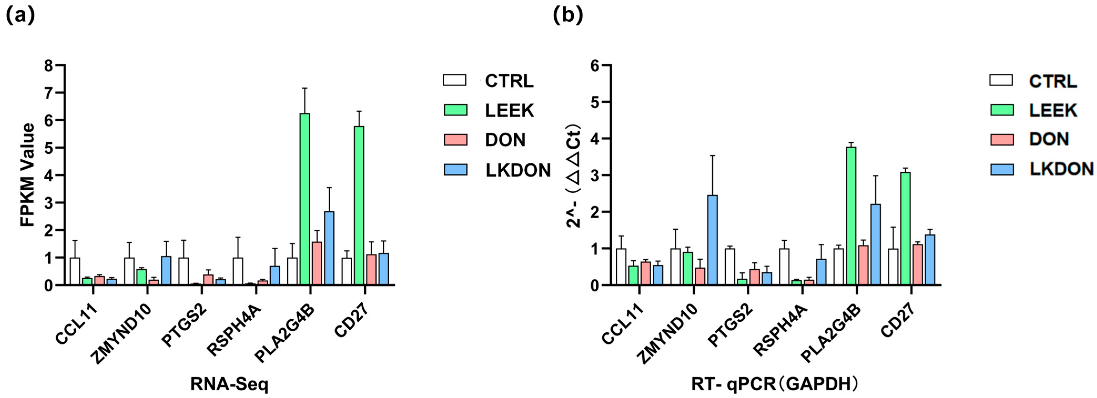 2.11. Validation of DEGs