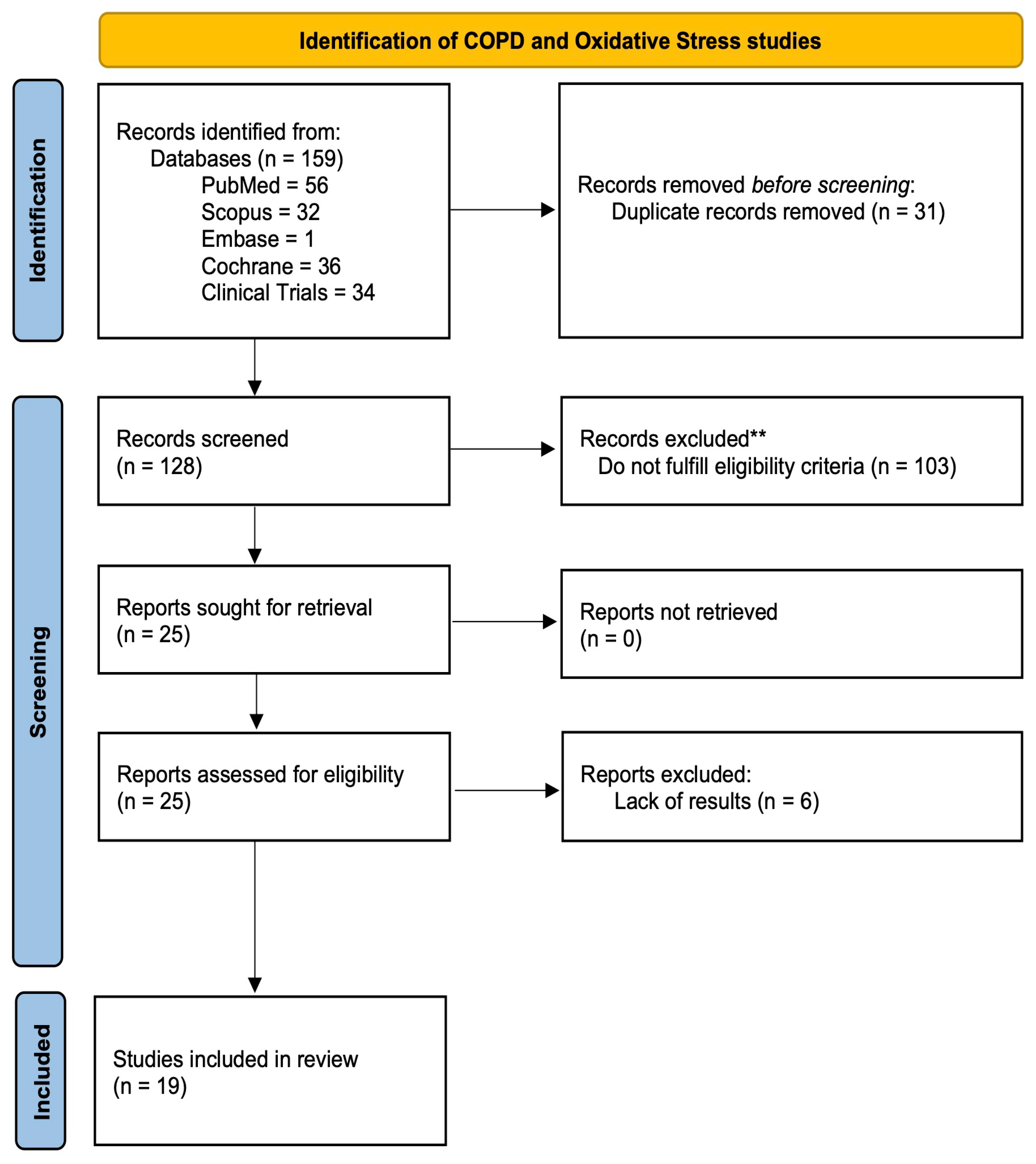 - O (outcomes): exacerbation risk, exercise capacity, and oxidative stress or inflammatory biomarkers.