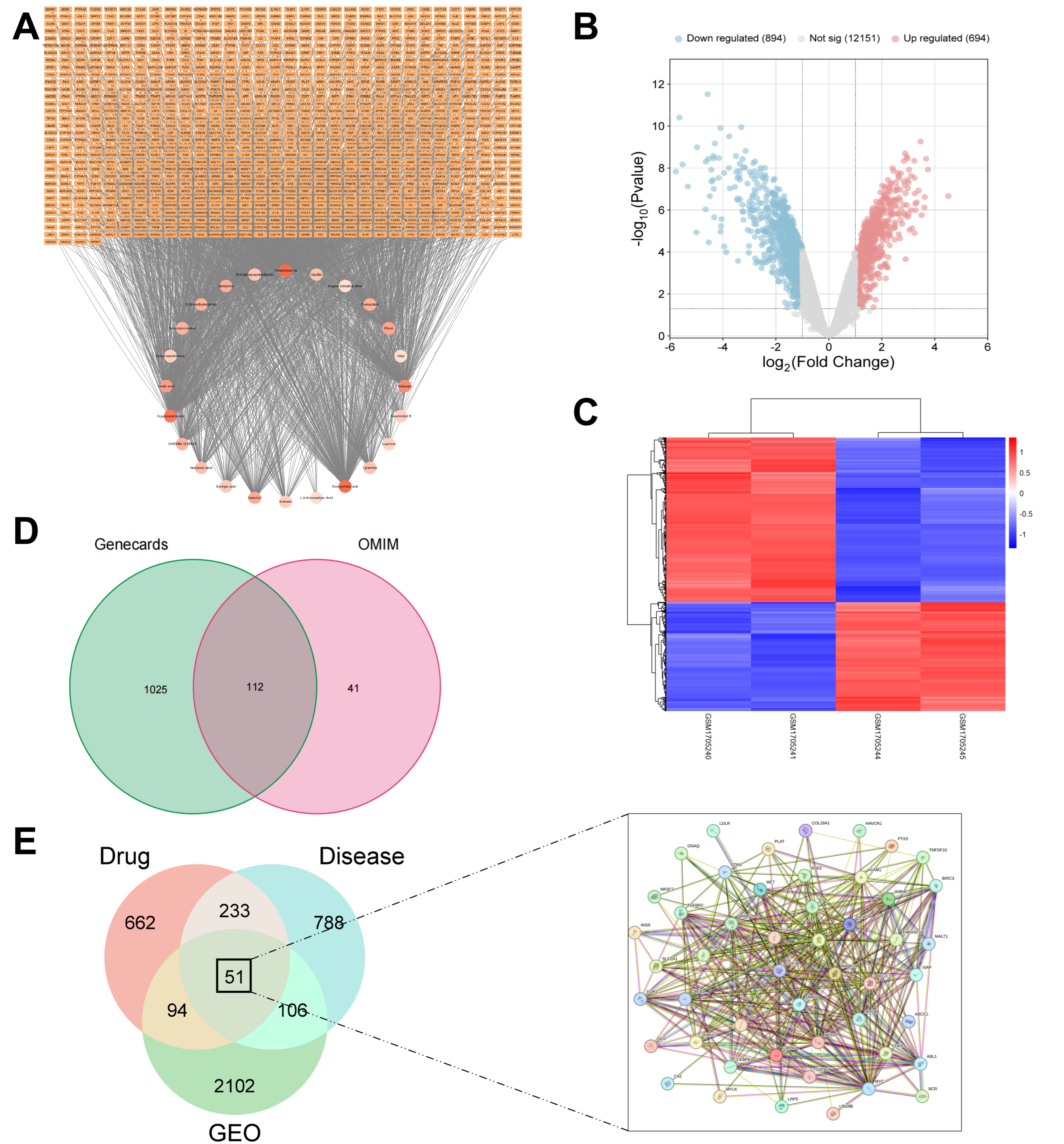 2.9.3. Compound–Target Interactions and PPI Network