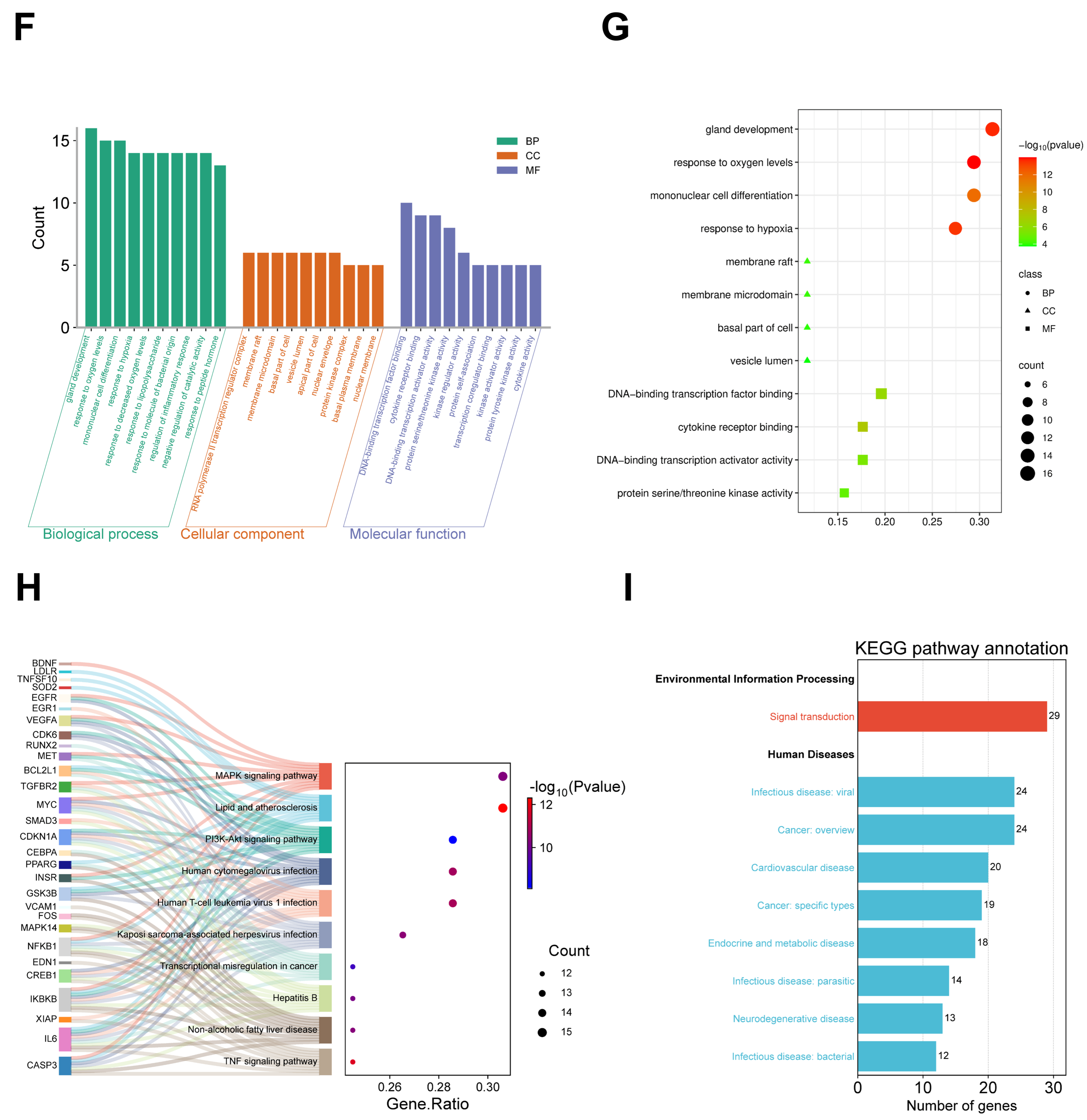 Figure 3H,I). These pathways were further classified into two main categories-environmental information processing and human diseases-reflecting the multi-target mechanism through which RSNPs exert their therapeutic effects against AKI.