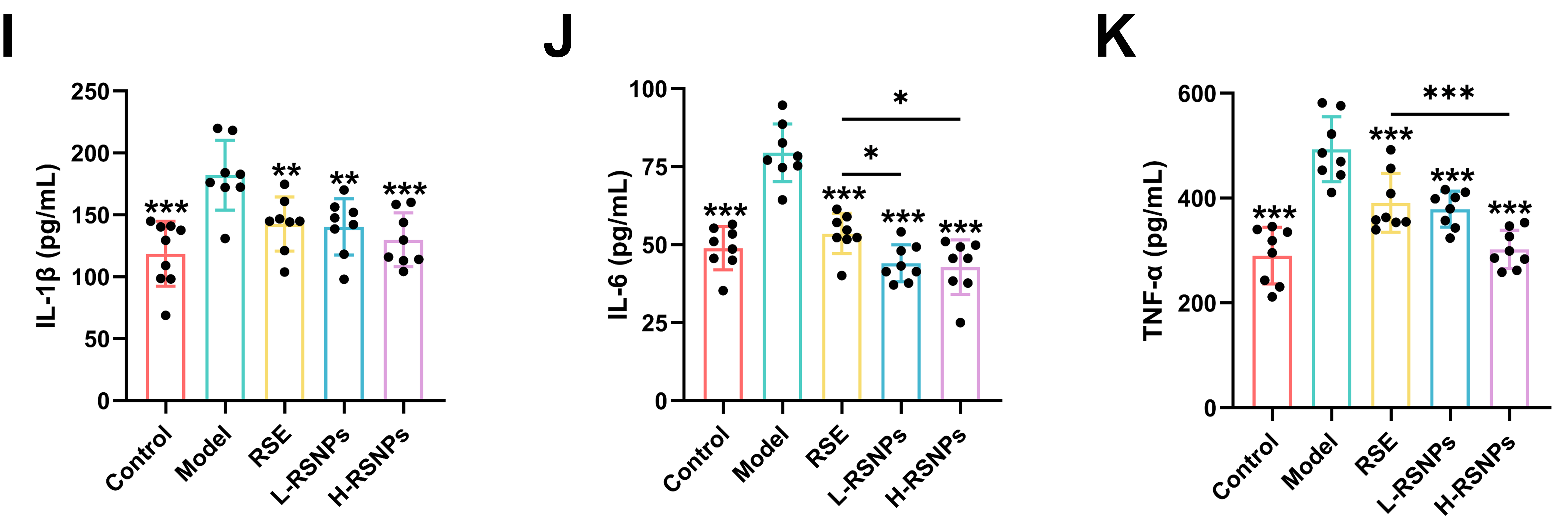 Figure 9J–M), with maximal suppression at 20 μg/mL. These results establish a clear link between anti-inflammatory activity and the overall cytoprotective efficacy of RSNPs.