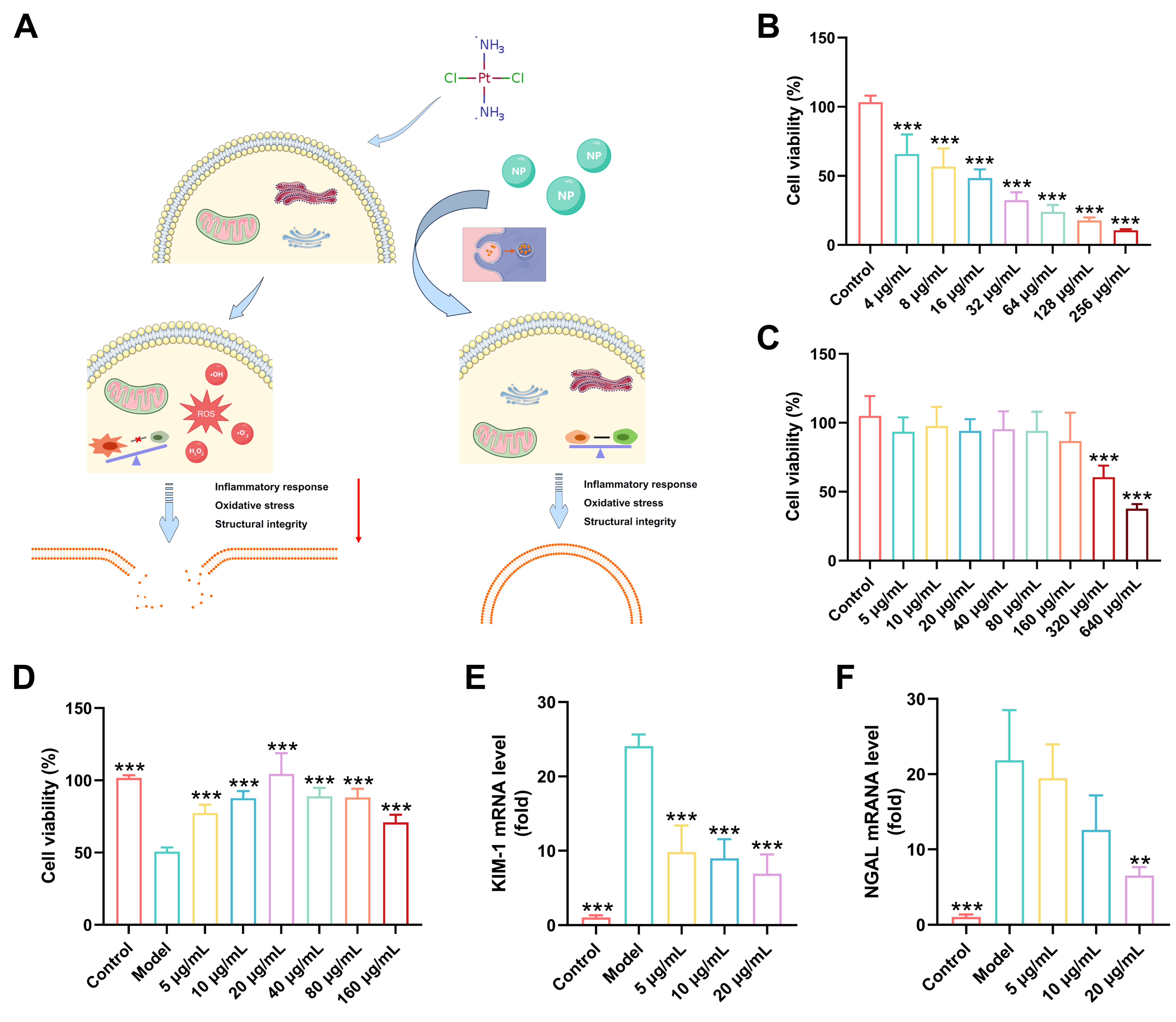 We next evaluated the renoprotective effects of RSNPs against CDDP-induced injury in renal tubular epithelial cells. A dose–response study first established 8 μg/mL CDDP as an optimal concentration for inducing consistent cellular damage (
