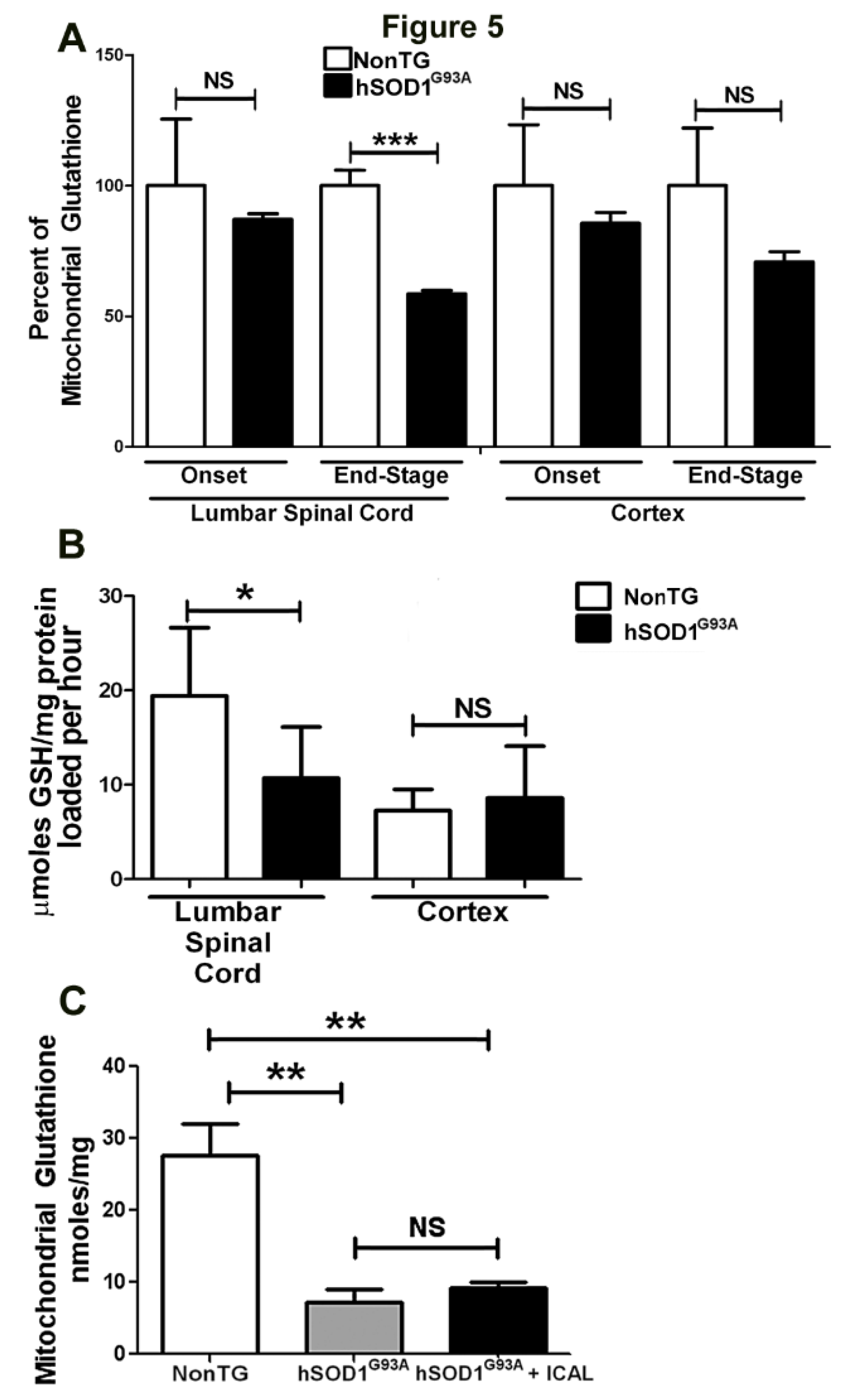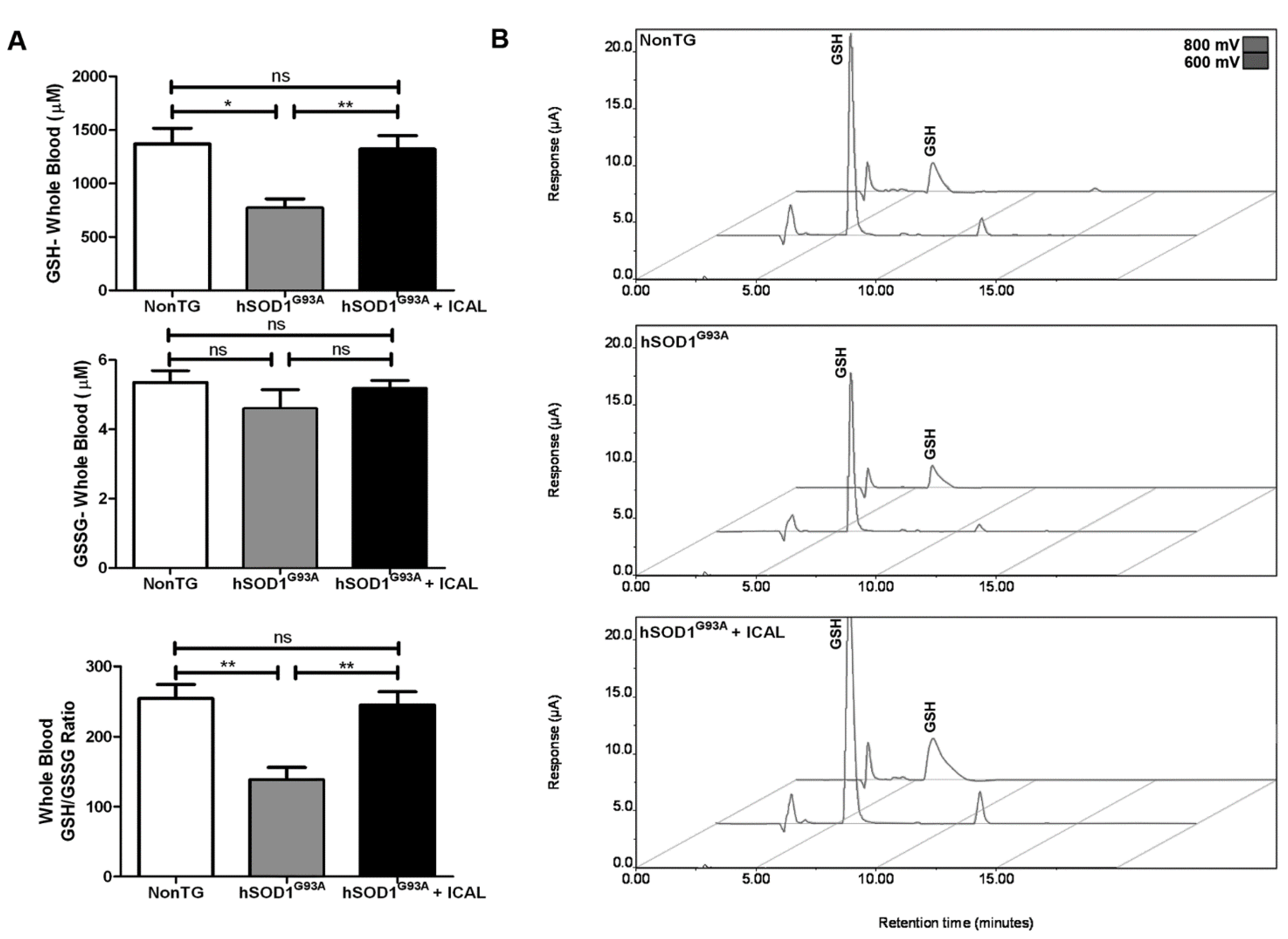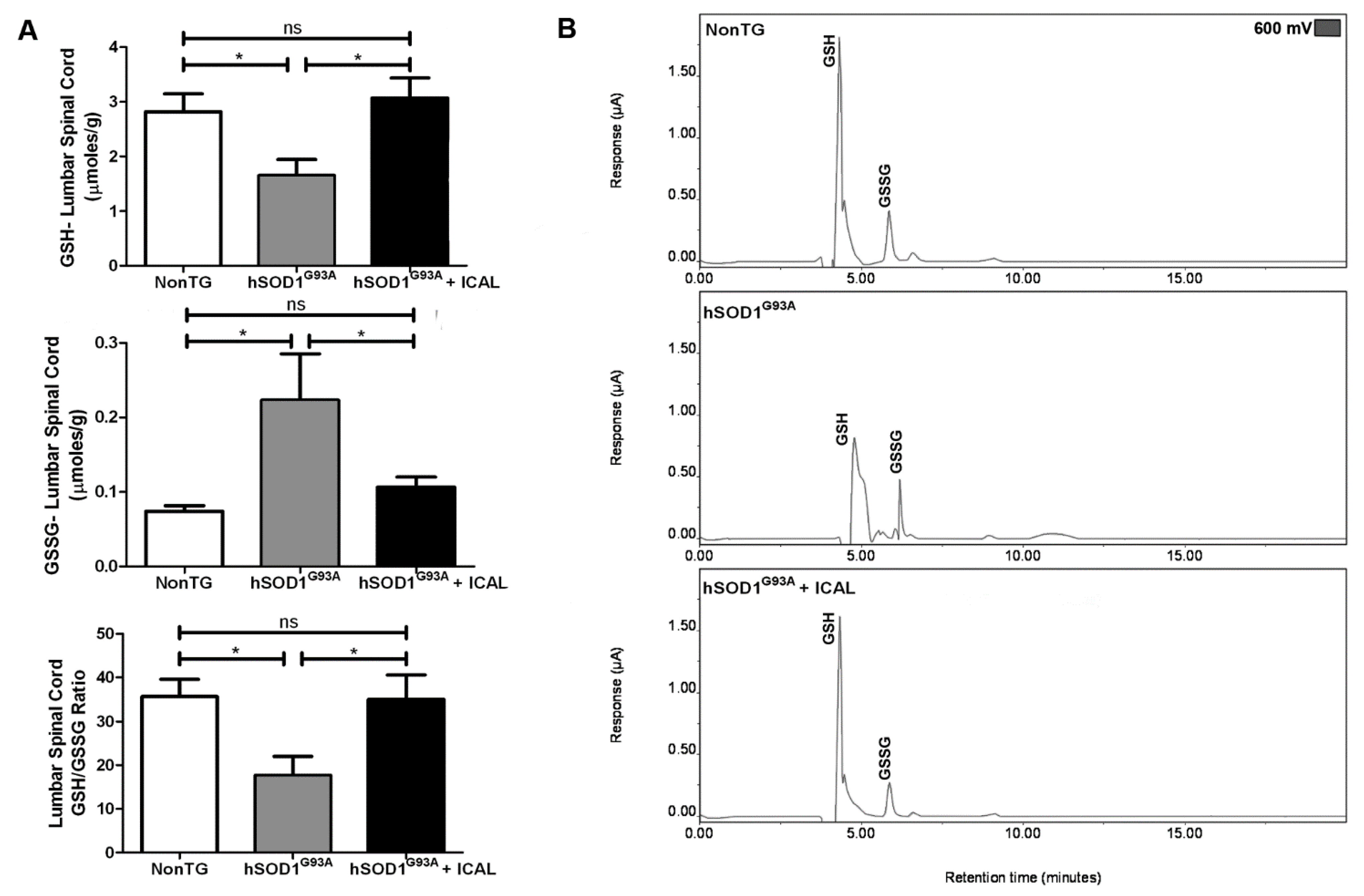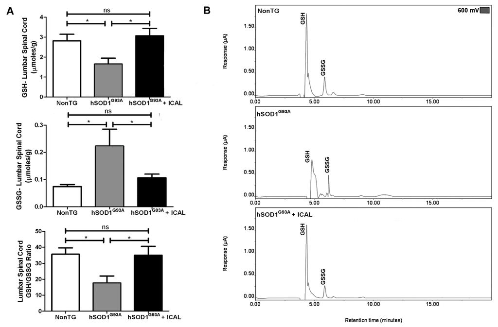 3.3. Immunocal® Does Not Prevent Depletion of Mitochondrial GSH in Lumbar Spinal Cord of hSOD1G93A Mice