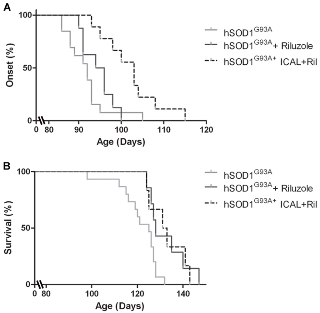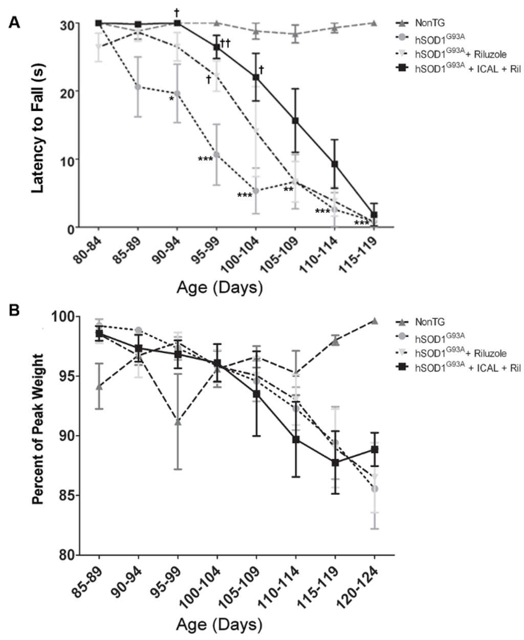 | 5 | ICAL (oral gavage) + riluzole | 5 | 5 | 10 | 101 *** | 2 |