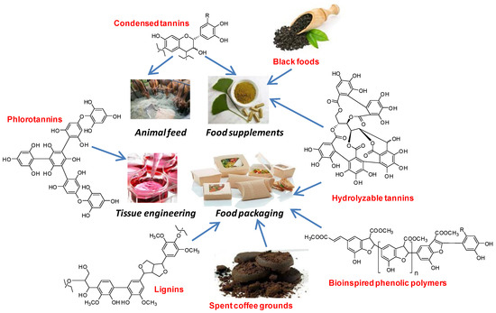 Most of the vegetable sources currently investigated are rich in polymeric phenolic components that are amenable for several uses and applications. In the following part of this review, we will focus on selected classes of phenolic polymers with particular attention to those that can be obtained from abundant available sources by minimal processing.