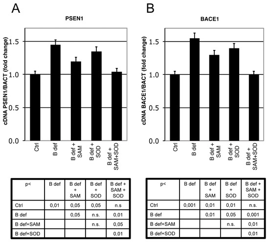 3.3. SAM and SOD Reduce PSEN1 and BACE Expression