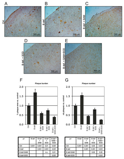 3.4. SAM and SOD Reduce Amyloid Production and Plaque Burden