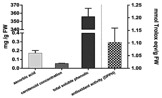 Partial characterization of the antioxidant levels of Aloe vera leaves. Values are given as mean values for triplicates.
