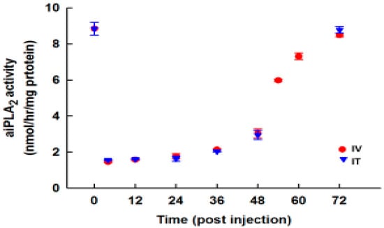 3.7. Effect of PIP-2 on aiPLA2 Activity In Vivo and its Biological Stability