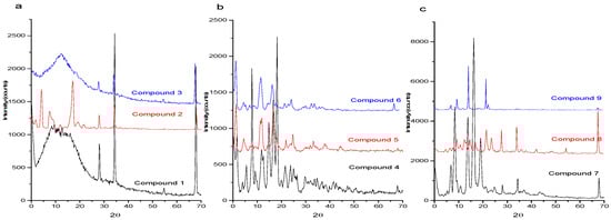 (a–c) Diffractogram of Schiff bases 1–9.