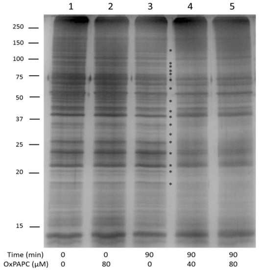 3.1. Incubation with OxPLs Changes the Electrophoretic Mobility of Certain Proteins