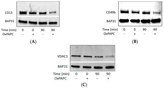 3.3. Confirmation of OxPAPC-Induced Protein Modifications by Western Blotting