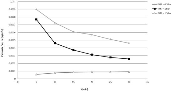 This juice content is in line with those reported by the IGP document (juice content > 30%) and in line with C. limon juice content that is in the range 30.22% for Monachello to 58.42 for Meyer variety []. Our juice showed a content similar to Santa Tereza variety (46.27%) []. Pearmeate flux as function of time monitored at three different TMP is reported in Figure 1.