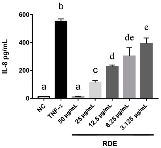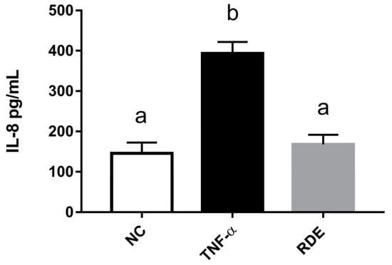 3.2. Dose-Effect of RDE on the IL-8 Production in Monolayer Caco-2 Cells