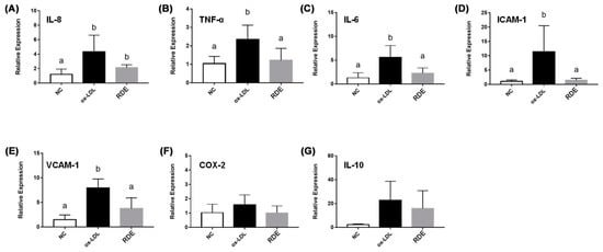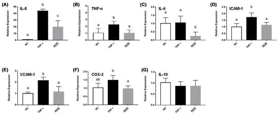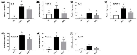 3.3. Effects of RDE on the Cytokine Gene Expression in the Monolayer Caco-2 Cells