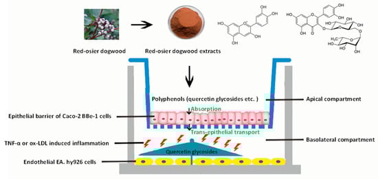 Jiang, Q.; Zhang, H.; Yang, R.; Hui, Q.; Chen, Y.; Mats, L.; Tsao, R.; Yang, C. Red-Osier Dogwood Extracts Prevent Inflammatory Responses in Caco-2 Cells and a Caco-2 BBe1/EA.hy926 Cell Co-Culture Model. Antioxidants 2019, 8, 428. https://doi.org/10.3390/antiox8100428