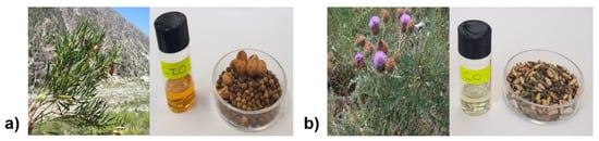 Oil extraction was performed according to the AOAC method Am2-93 [14]. Using a Soxhlet apparatus and n-hexane (150 mL) as an extraction solvent, about 250 g of Colliguaya integerrima seeds were extracted for 8 h. Then, by distillation under reduced pressure at 40 °C, n-hexane was removed. The orange oil obtained from Colliguaya integerrima was stored at 4 °C under nitrogen atmosphere until further study. The extraction for each harvested sample was performed in triplicate, obtaining a 27.3% ± 2.9 yield. The same procedure was used for the Cynara cardunculus; however, the oil obtained had a yellow tint with 23.0% ± 2.5 of yield. Figure 1 shows a photograph of the plants, the obtained oil, and seeds of Colliguaya integerrima (a) and Cynara cardunculus (b).