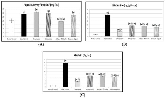 Chicago/Turabian StyleZaghlool, Sameh S., Ali A. Abo-Seif, Mohamed A. Rabeh, Usama Ramadan Abdelmohsen, and Basim A. S. Messiha. 2019. "Gastro-Protective and Anti-Oxidant Potential of Althaea officinalis and Solanum nigrum on Pyloric Ligation/Indomethacin-Induced Ulceration in Rats" Antioxidants 8, no. 11: 512. https://doi.org/10.3390/antiox8110512