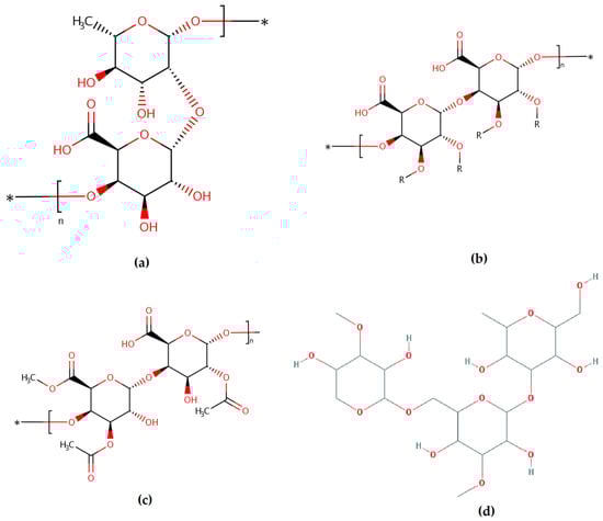 Rhamnogalacturonan type I (RG-I) (a) and type II (RG-II) (b), homogalacturonan (HG) (c) and arabinogalactan (AG) (d) structures. *—the compounds can bind to rhamnose, galactose, arabinose [29].