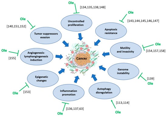 Effect of oleuropein (Ole) on the factors contributing to cancer development.