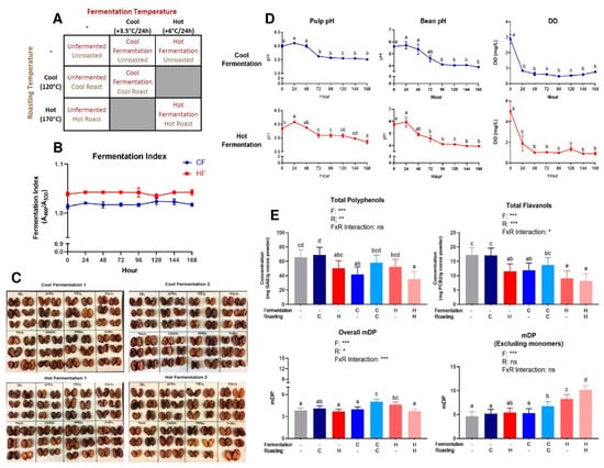 - Romero-Cortes, T.; Salgado-Cervantes, M.A.; García-Alamilla, P.; García-Alvarado, M.A.; del C Rodríguez-Jimenes, G.; Hidalgo-Morales, M.; Robles-Olvera, V. Relationship between fermentation index and other biochemical changes evaluated during the fermentation of Mexican cocoa (Theobroma cacao) beans. J. Sci. Food Agric. 2013, 93, 2596–2604. [Google Scholar] [CrossRef]