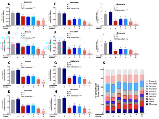 - Payne, M.J.; Hurst, W.J.; Miller, K.B.; Rank, C.; Stuart, D.A. Impact of Fermentation, Drying, Roasting, and Dutch Processing on Epicatechin and Catechin Content of Cacao Beans and Cocoa Ingredients. J. Agric. Food Chem. 2010, 58, 10518–10527. [Google Scholar] [CrossRef]