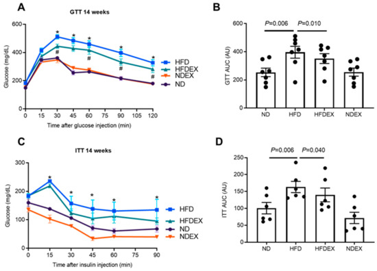 2.4. Glucose and Insulin Tolerance Tests (GTT, ITT)