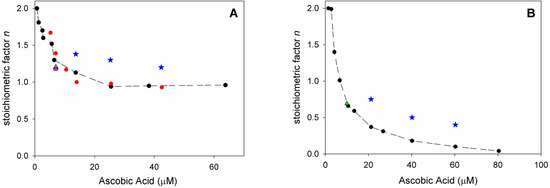 3.3. Stability of Ascorbic Acid (AH2) in Solution