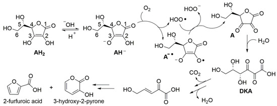 - Yuan, J.-P.; Chen, F. Degradation of ascorbic acid in aqueous aolution. J. Agric. Food Chem. 1998, 46, 5078–5082. [Google Scholar] [CrossRef]