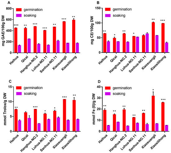 3.2. Changes of Antioxidant Activities Induced by Germination