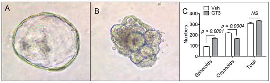 3.4. GT3 Pretreatment Failed to Promote Ex Vivo Intestinal Organoid Formation after TBI