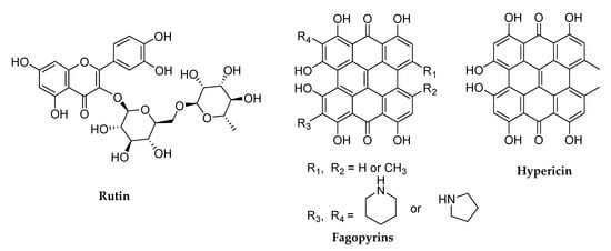 | Fagopyrins | 19 ± 2 | 32 ± 4 |