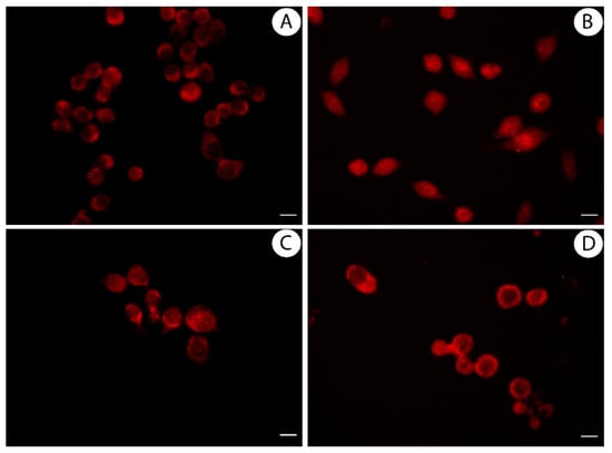 RAW 264.7 cells were seeded on coverslip in 6-well plates at a density of 1 × 105 cells/well, and cultured overnight in complete medium. Then, they were treated for 1 h with LPS (1 µg/mL) and extract or licoflavanone, using their IC50 values. Next, cells were fixed with ice cold methanol for 20 min at −20 °C, washed three times for 5 min with Tris buffered saline (TBS, Sigma-Aldrich), and incubated for blocking with 5% bovine serum albumin (BSA, Sigma-Aldrich) in TBS for 40 min at 37 °C. Then, cells were incubated for 40 min at 37 °C in anti-NF-kB p65 monoclonal antibody (Santa Cruz, Biotechnology), diluted 1:200. After, they were washed three times for 5 min with TBS to discard the excess of primary antibody, incubated for 40 min at 37 °C in anti-mouse IgG-TRITC (Sigma-Aldrich) diluted 1:300, and subsequently washed three times for 5 min with TBS. Images at 20× magnification were taken on Olympus BX41 microscope with CSV1.14 software, using a CAMXC-30 for image acquisition.
