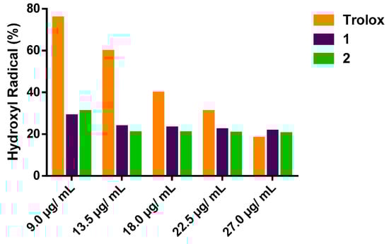 3.1. In Vitro Antioxidant Potential against the Production of Hydroxyl Radical