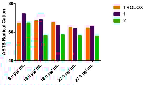 2.1. Evaluation of in Vitro Antioxidant Potential by Inhibition of ABTS●+ Radical