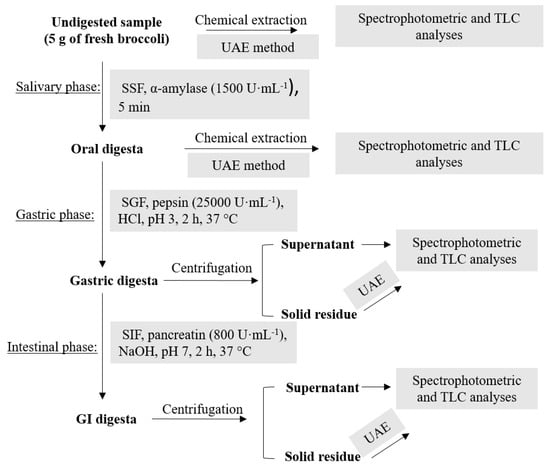 Graphical representation of the in vitro gastrointestinal digestion model carried out on broccoli samples is shown in Figure 1.