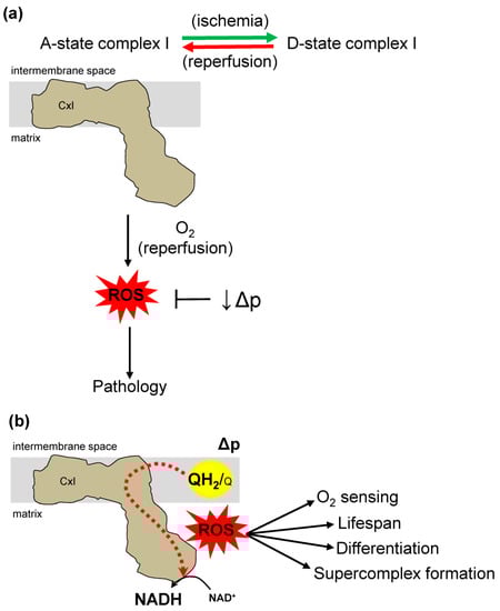 - Drose, S.; Stepanova, A.; Galkin, A. Ischemic A/D transition of mitochondrial complex I and its role in ROS generation. Biochim. Biophys. Acta 2016, 1857, 946–957. [Google Scholar] [CrossRef]