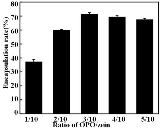 Encapsulation rate of different mass ratios of OPO/zein (1/10, 2/10, 3/10, 4/10, 5/10).